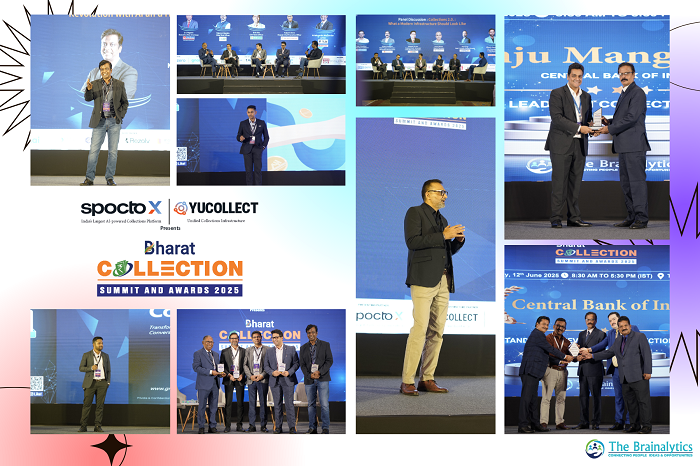 On 12th June 2025, The Lalit Mumbai hosted the inaugural Bharat Collections Awards & Summit 2025, bringing together over 200+ collection-focused delegates, 50+ speakers, and senior leaders from India’s financial services ecosystem. The event was organized by The Brainalytics and strongly supported by presenting partners Spocto X, Indias largest AI-powered end-to-end collections platform, and YuCollect, Indias first unified collections infrastructure. Both platforms played a central role in driving the event’s agenda of innovation, transparency, and responsible collections.