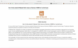 Contrary to the HR circular, a subsequent press communication claims that the Government of India has extended Dr Shah’s tenure as Chairman of NDDB for three and a half years.